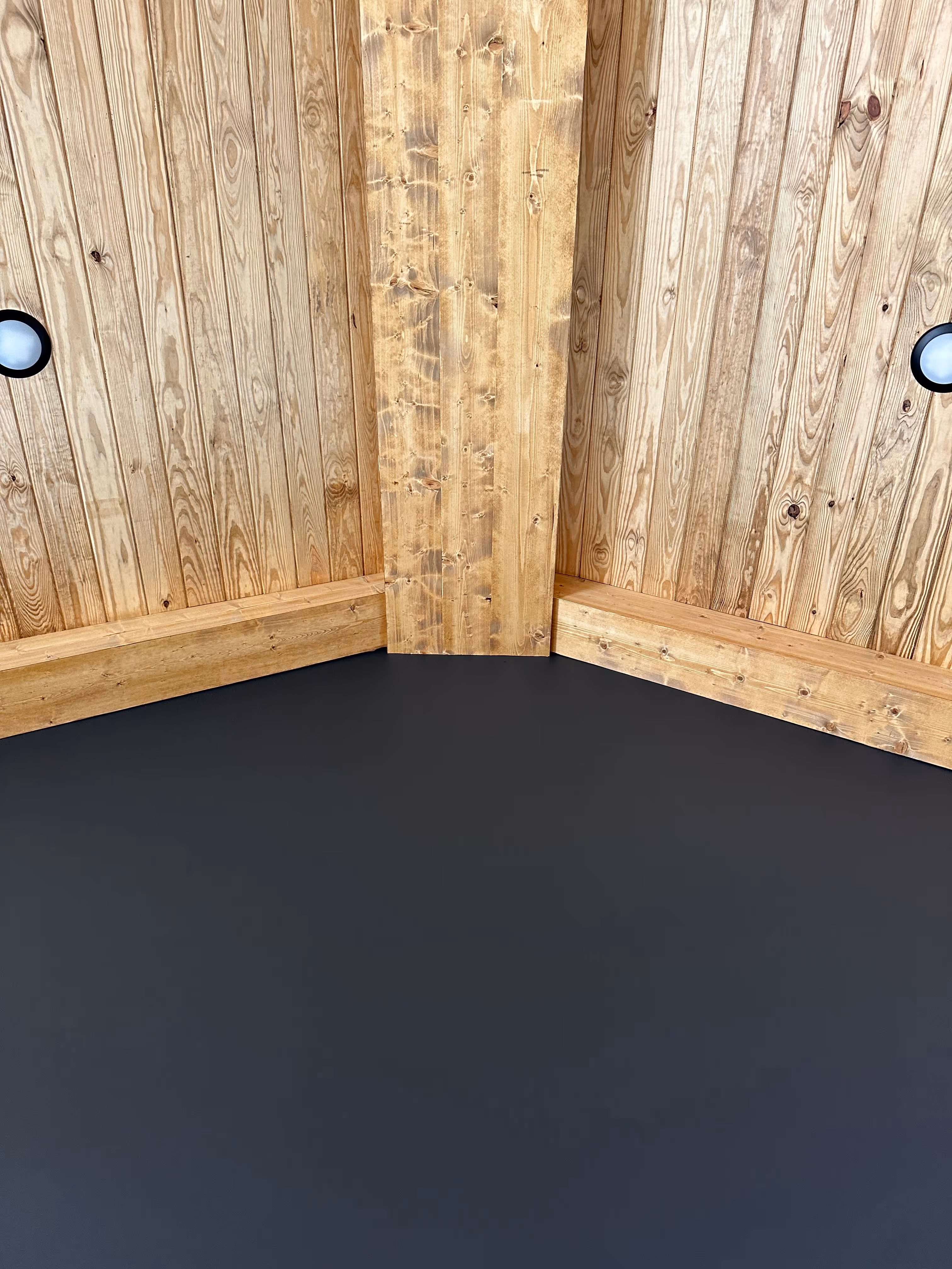 Engineered timber beams + reclaimed wood accents